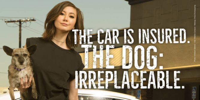 Kimiko Glenn: The Car Is Insured. The Dog: Irreplaceable. (Version 1)