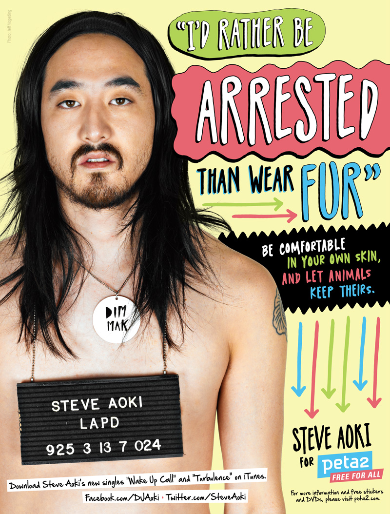 Steve Aoki: I’d Rather Be Arrested Than Wear Fur (peta2)