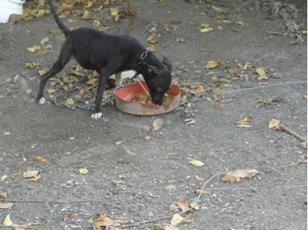 An underweight, short-haired dog in North Carolina who had been forced to live outdoors 24/7 was surrendered to PETA, treated for a severe infestation of intestinal parasites, and adopted by a loving family who keeps her indoors, where she belongs.