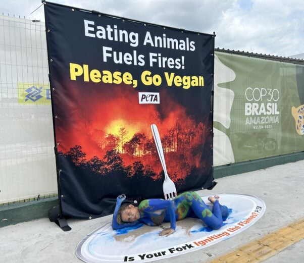 Nude, Scorched ‘Mother Earth’ Blasts COP30 Over Meaty Menu