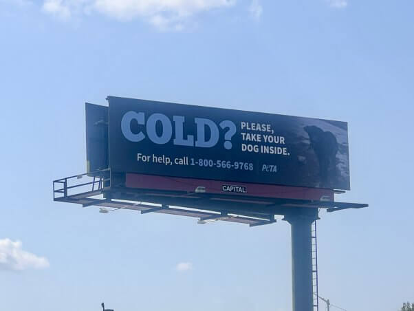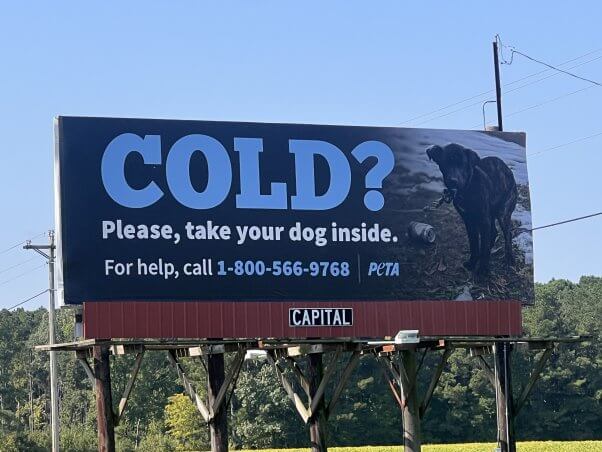 PETA Billboard Blitz in North Carolina Urges: Don’t Leave Dogs out in the Cold!