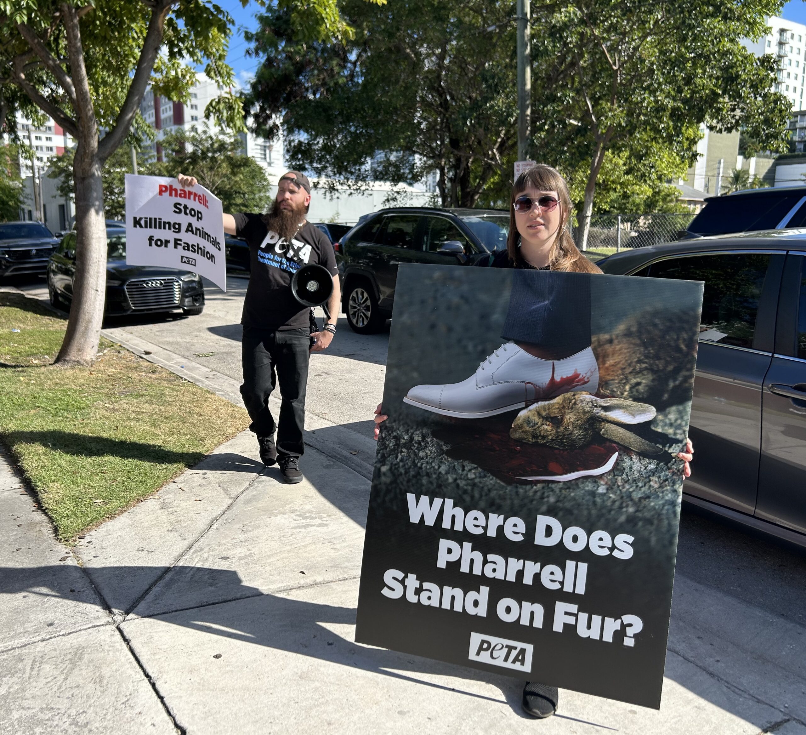 PETA Protesters Blast Pharrell Over Louis Vuitton Animal Use