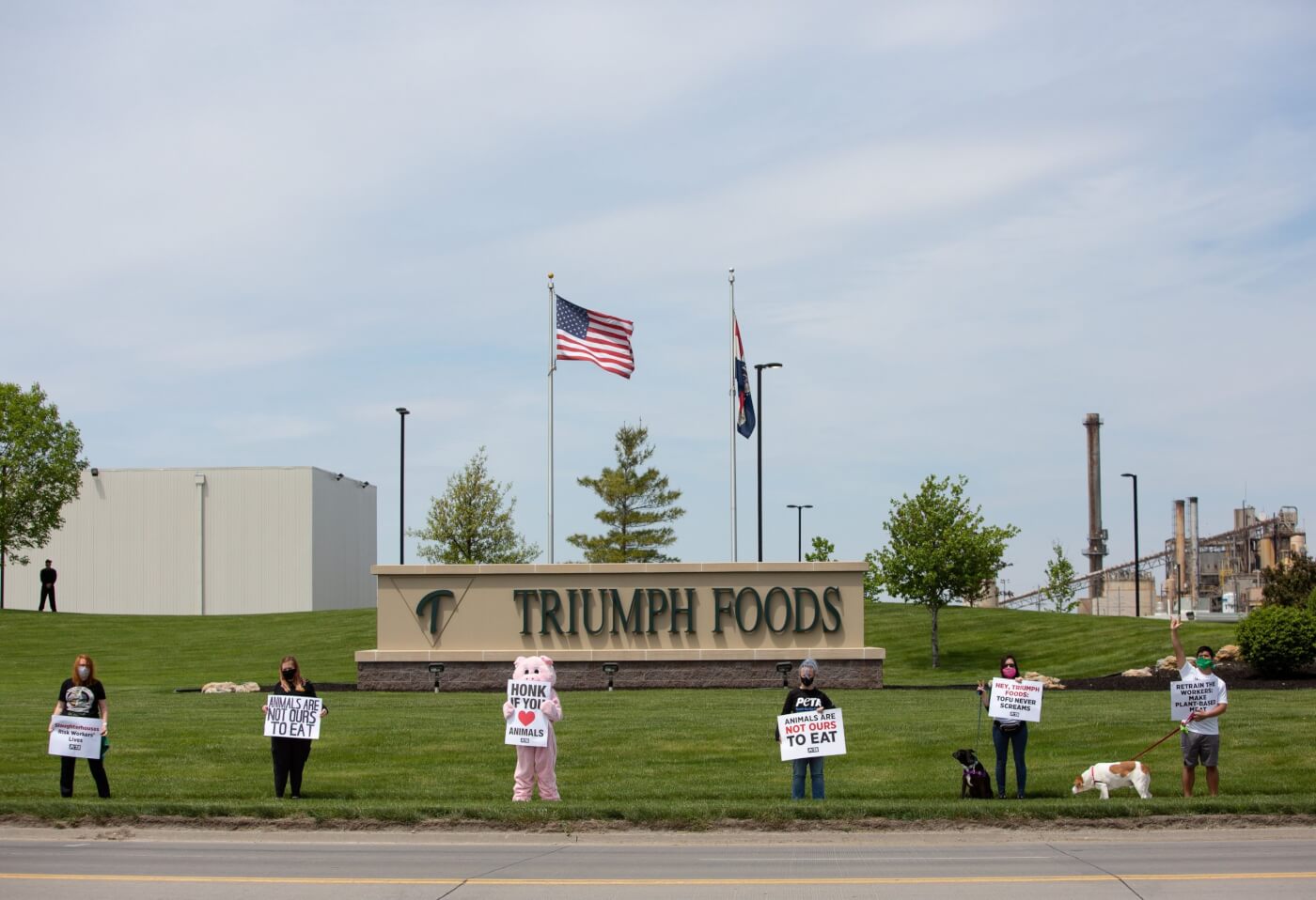 PETA’s ‘Pandemic Pig’ Triumph Foods Slaughterhouse Demonstration