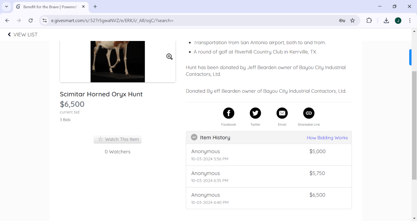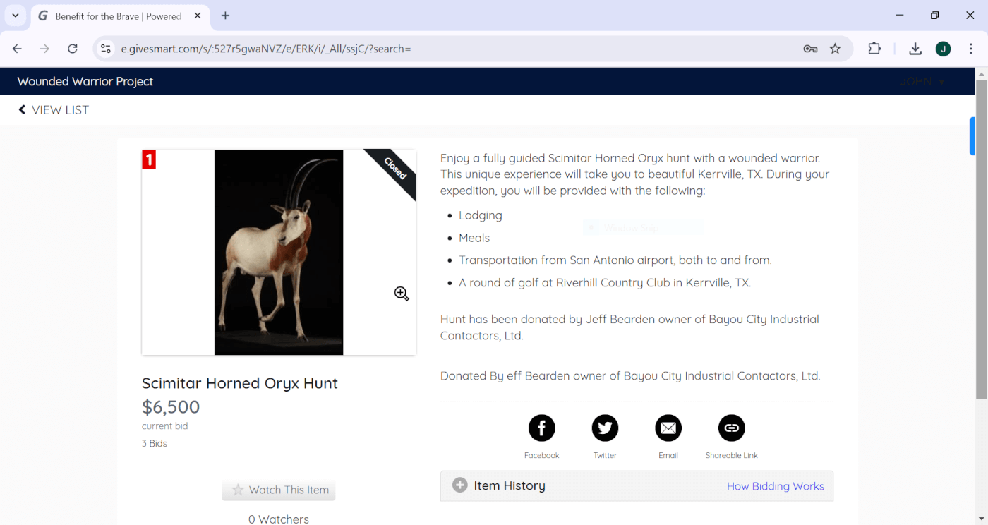 Wounded Warrior Canned Hunt Auction