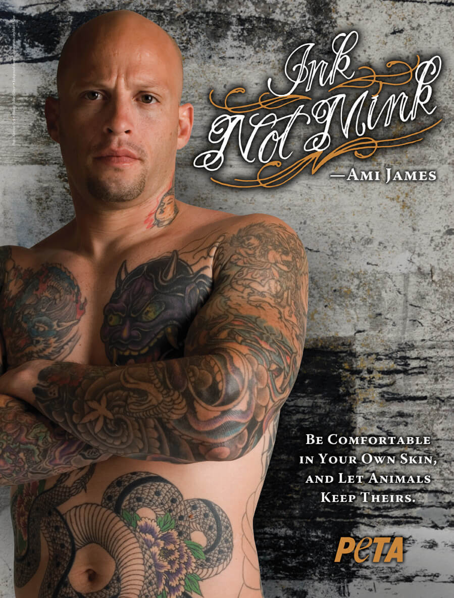 Angela unveiled the ad to an enthusiastic crowd at Manhattan’s Paramount Hotel last night, including her uncle Russell, whose vegan lifestyle inspired her own, Ami James, Simone Reyes, and other animal-loving VIPs, while enjoying music by Samantha Ronson (who wore a “no fur” button all night).