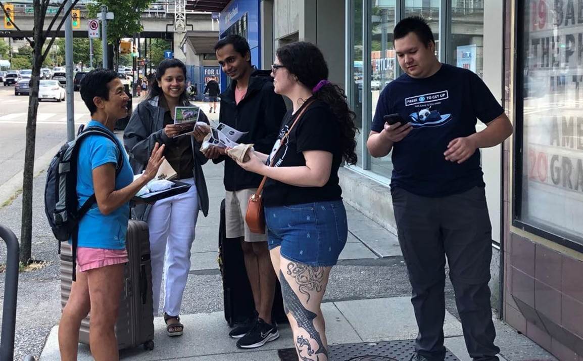 PETA supporters handed out more than 100 delicious vegan “Bacon”, lettuce, and tomato sandwiches to moviegoers attending a 30th Anniversary screening of Babe. Seizing the opportunity to connect hearts and minds, the volunteers gathered outside the Rio Theatre in Vancouver, BC. They shared animal rights leaflets in addition to the sandwiches, and held signs reading “Pigs Feel Pain, Joy, and Fear—Just Like Babe,” sparking thoughtful conversations with attendees. Many of the Babe attendees thanked the volunteers for being there and gratefully accepted the vegan BLT before heading into the theater.