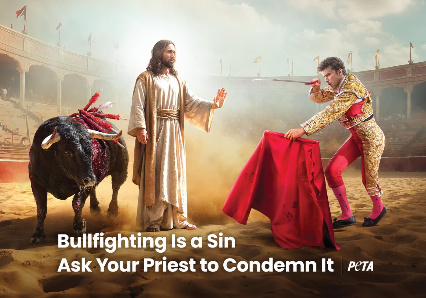 “Bullfighting Is a Sin.” That message is the wake-up call that Catholic authorities need, and PETA Latino is making sure they can’t hit the “snooze” button.