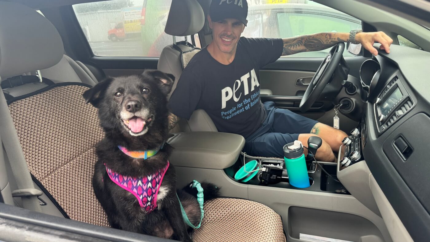 Chris personally drove Rusty to his new adoptive guardian in West Palm Beach, Florida. Thanks to Chris and PETA’s team, Rusty is now spending his golden years safe and warm inside as a beloved family member.