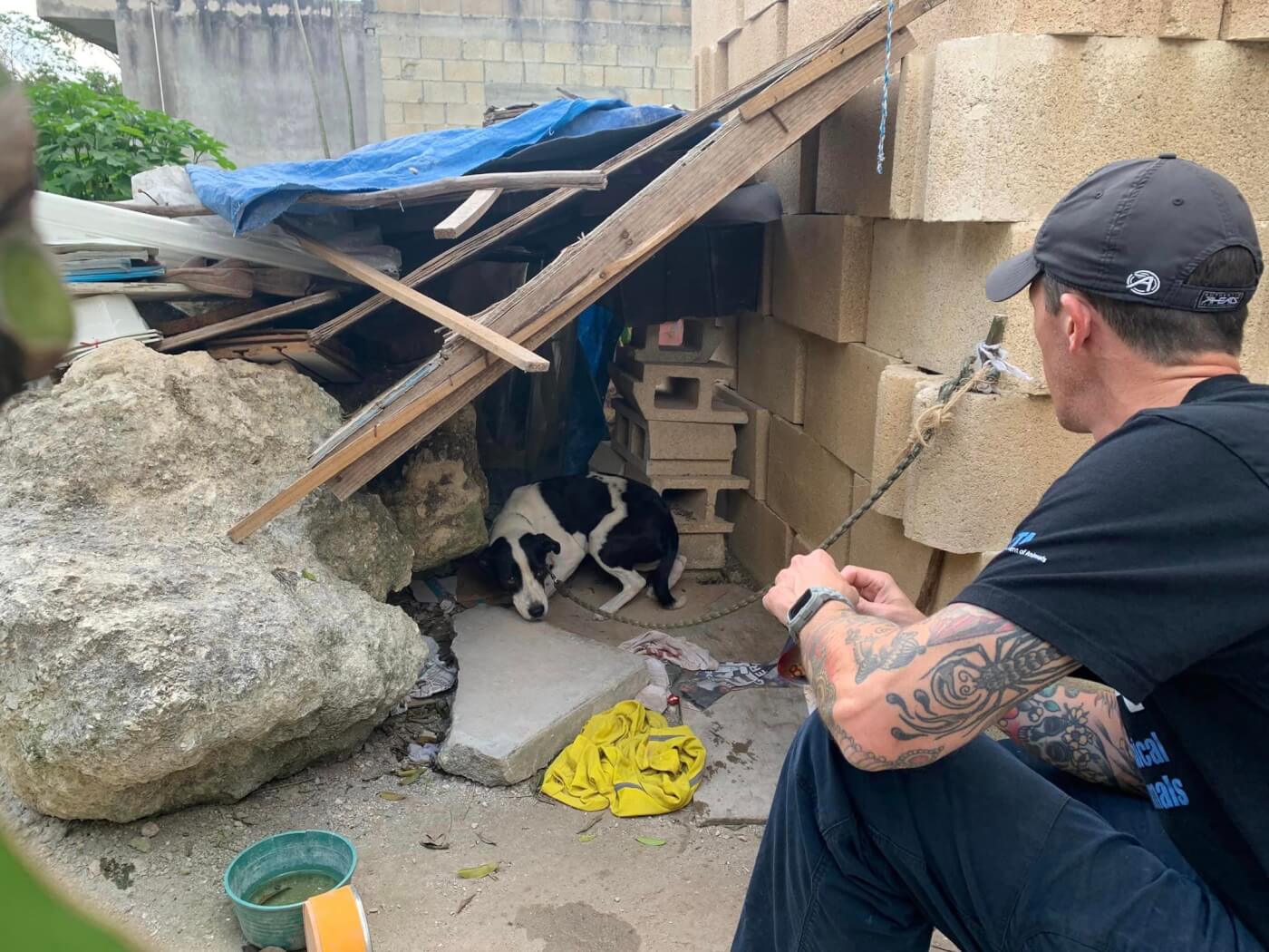 - Provides chained dogs who don’t have adequate protection from the elements with sturdy, custom-built wooden doghouses and lightweight tie-outs.
