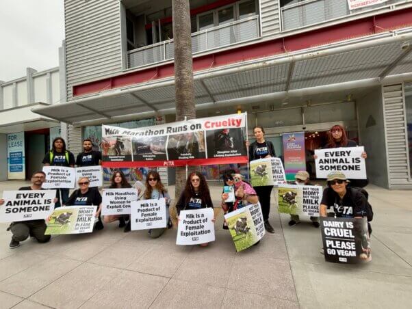 Passionate PETA supporters crashed several dairy-backed Shake Out runs—including the Boston Marathon’s—to loudly expose how mothers are treated when exploited for their milk.