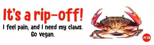 The billboard served as a reminder that all crabs are clever, complex individuals with distinct personalities who value their own lives—but in the fishing industry, they experience constant fear and pain when humans tear them from their ocean homes and families, dismember them, or boil them alive at restaurants.