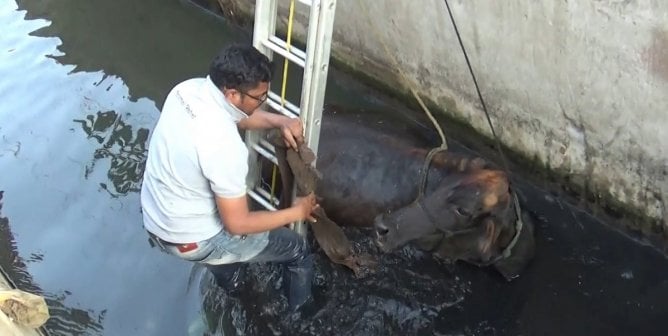 A harrowing day had a happy ending for one sweet bovine, thanks to a team of rescuers who refused to give up.