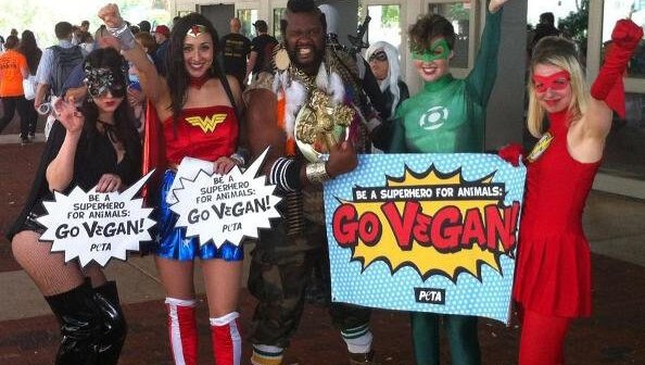 The Baltimore Comic-Con got a comedic confluence of heroism when a Mr. T look-alike jumped in with PETA’s superheroes to fight for truth, justice, and the vegan way. The gals were busy posing for pictures with delighted comic book fans and flying through a stash of vegetarian/vegan starter kits as fast as their caped arms … Read more »