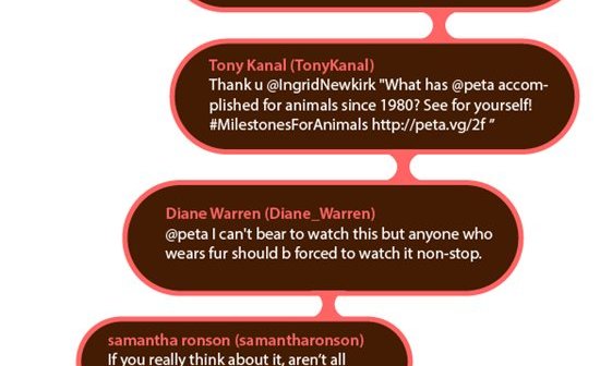 The Goddess of Pop is also a goddess to pups. When Cher tweeted, asking for information from PETA on how to help dogs left to face the harsh winter weather alone outdoors, many of her fans responded, and PETA sent her information on our “Angels for Animals” doghouse sponsorship program. Elsewhere on Twitter, Miley Cyrus showed us … Read more »