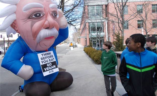 March 14 is Albert Einstein’s birthday, and the celebration was in full swing at Princeton University, where he held a position until his death, when PETA showed up with an Einstein that made the rest of the tributes look like mere bosons: Even though we had to use a bit of string theory to keep … Read more »