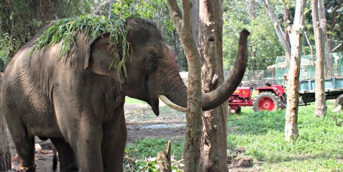 Before his rescue, the elephant was abused and in isolation. Now he has friends of his own species, gets coconuts for treats, and splashes around in a natural pond!