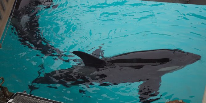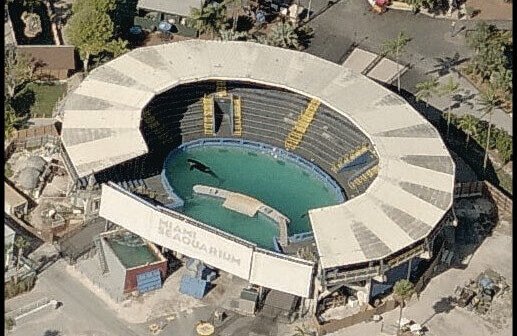 New aerial photography shows 7,000-pound orca Lolita in her tank―the smallest orca tank in America―where she has lived since she was captured from her pod 44 years ago.
