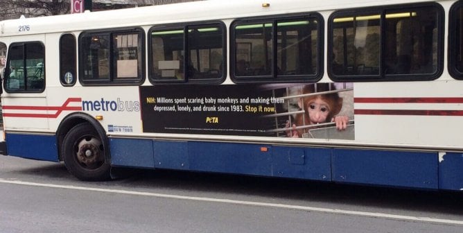 Thanks to a generous grant, PETA will be plastering buses and bus stops surrounding NIH’s Bethesda headquarters with ads blasting cruel experiments on baby monkeys.