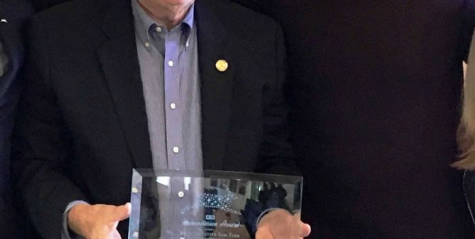Kevin Nealon helps present California Rep. Sam Farr with a well-deserved honor.
