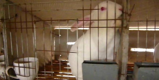 PETA Asia found that rabbits are forced to live in urine-encrusted cages before finally being strung up and skinned—sometimes while still alive. Act now!