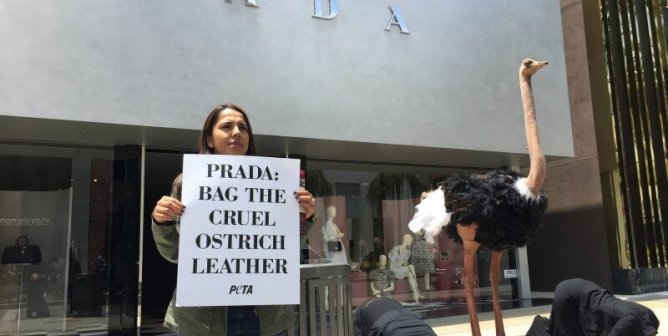 PETA reveals how birds are hit, shocked, killed, plucked, and skinned for store’s ostrich-leather bags and couches.