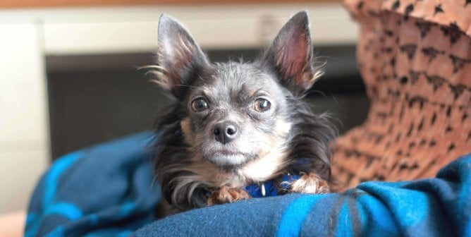 The dog with the crazy hairdo finds the perfect “den” in the concrete jungle.