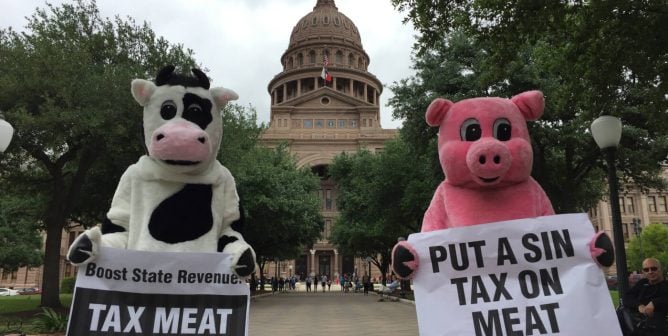 Tobacco, alcohol, and gasoline are taxed because of their negative health or environmental costs, so shouldn’t meat be, too? PETA thinks so!
