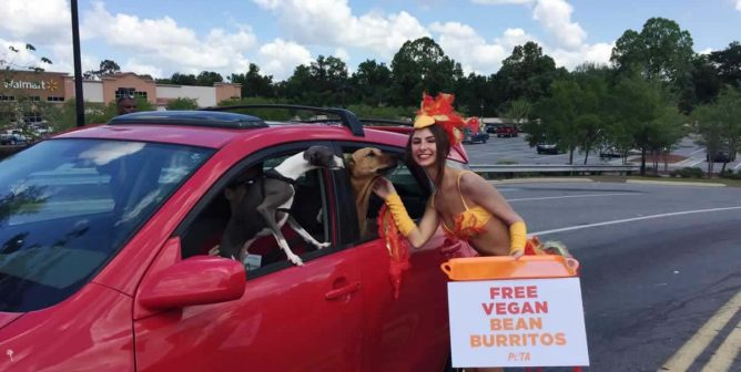 PETA’s sexy “chicks” dish up free vegan Taco Bell burritos to show folks in Florida and Georgia just how easy it is to go vegan.
