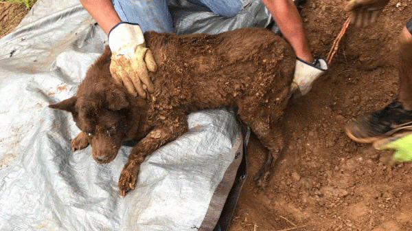 The local fire department has joined community efforts to find the culprit or culprits who buried a brown chow mix alive near Atlanta.