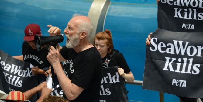 Other PETA members who were arrested have pressed assault charges against SeaWorld’s head of security after being attacked.