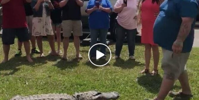 What better way to do a sex reveal than by dragging a 61-year-old, partially blind alligator into a crowd while blasting music?