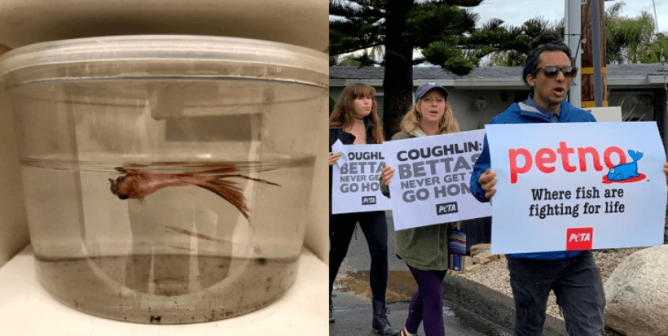 At Petco stores around the country, they’re confined to tiny plastic cups with scarcely a couple of inches of water inside that are stacked on top of one another.