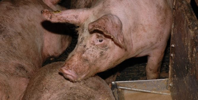 These pigs didn’t have to die—they were trapped in a barn because humans still dine on animal flesh. But we can all do something about that.