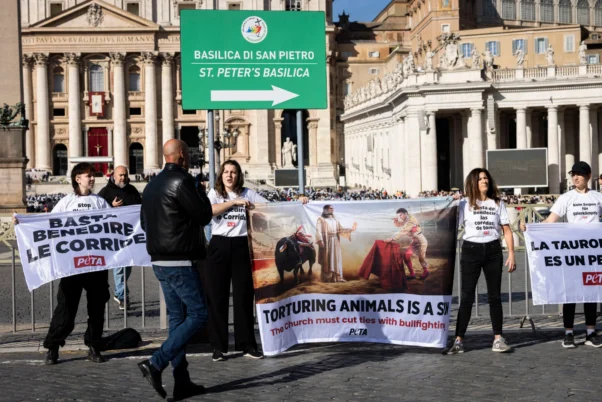 “We pray that you will find it in your heart to follow Pope Francis’ compassionate legacy by doing what he surely would have done had he had more time on Earth, and cut the Catholic Church’s sacrilegious ties to the torture killing of bulls for entertainment,” wrote PETA President Ingrid Newkirk. “In predominantly Catholic countries, this hideously cruel blood sport … survives in part because the Church permits its promoters to use the Church’s and the saints’ names.”