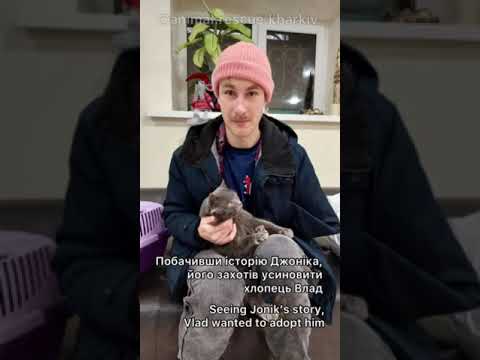 Abandoned and struggling to survive in Ukraine’s hardest-hit region, a cat named John was left with a painful injury after a panicked attempt to escape heavy gunfire, in which he jumped from the fourth-story window of a building. The courageous folks at Animal Rescue Kharkiv—backed by PETA’s Global Compassion Fund—healed his physical wounds, but the traumatic ordeal left him despondent. Grab your tissues, because you won’t want to miss this tale’s pawsitively heartwarming conclusion!