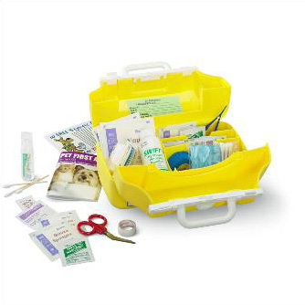 The prize for this week’s “Win It” Wednesday contest is sure to come in handy for emergency situations like Lulu’s. It’s this handy and stylish emergency kit for your pooch: