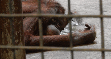According to PETA Asia’s investigators, nearly every animal is imprisoned inside this mall-top menagerie in a cage with little to no enrichment. One orangutan’s only source of entertainment was listlessly poking at a muddy puddle, and on another occasion, a piece of plastic.