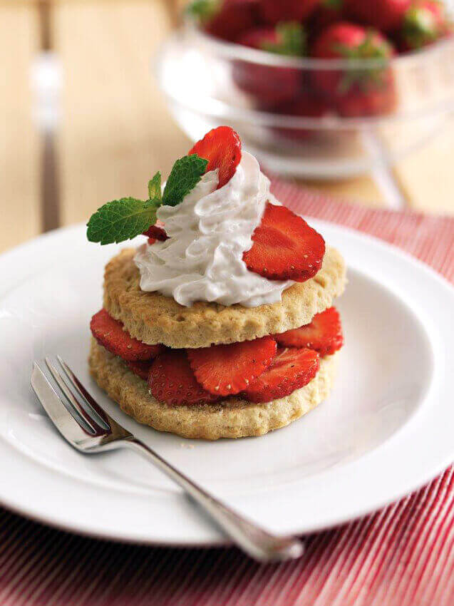 • Split the shortcakes into 2 layers. Place the bottom layers into individual serving bowls. Spoon some of the strawberries and nondairy whipped cream or ‘cream cheese’ sauce (see below) over the bottom layers. Add the top layers. Spoon more strawberries and the remaining nondairy whipped cream or ‘cream cheese’ sauce over tops. Serve immediately.